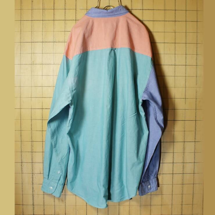 Eddie Bauer エディー バウアー マルチカラー ボタンダウンシャツ 長袖 ブルー ピンク グリーン メンズL 古着 051320ss111