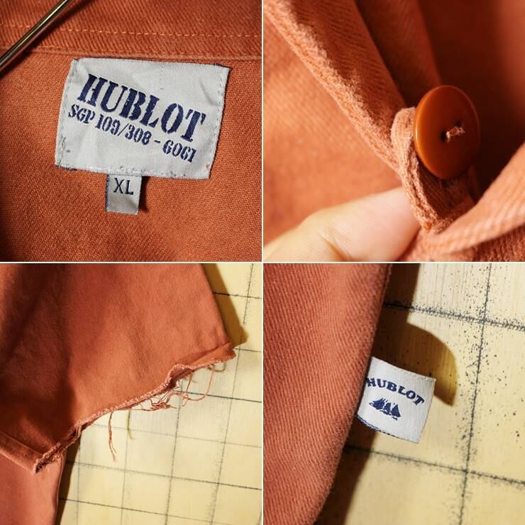 EURO プルオーバー ワークジャケット レンガ色 レッド メンズXL カットオフ ビッグサイズ ビンテージ HUBLOT ヨーロッパ古着です。