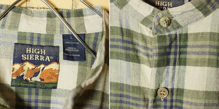 70s 80s USA 半袖 チェック シャツ グリーン メンズL スタンドカラー HIGH SIERRA アメリカ古着です。