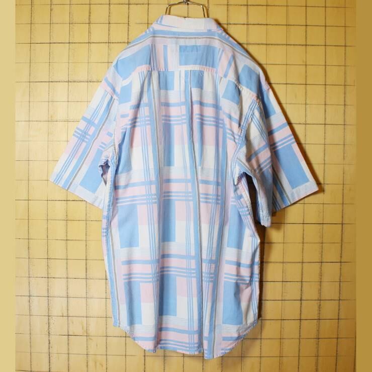 EURO 半袖 総柄 シャツ ライトブルー ピンク メンズL相当 FLASH BOYS ヨーロッパ古着 051320ss77
