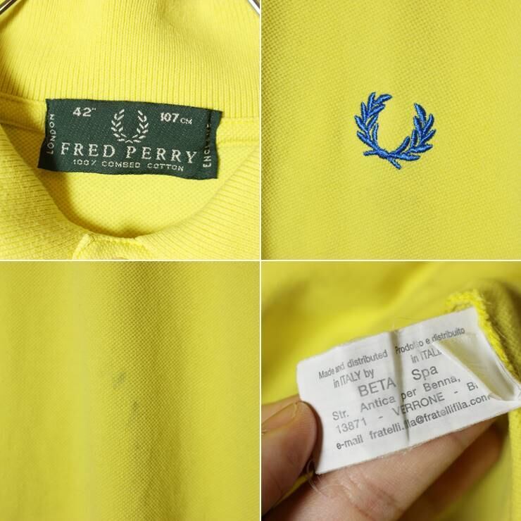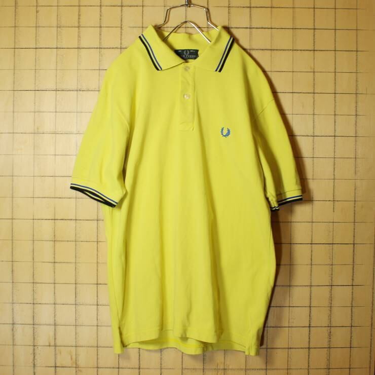 イタリア製 FRED PERRY フレッドペリー 半袖 ポロシャツ イエロー 黄 メンズSM相当 ワンポイント 古着 051320ss17