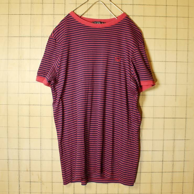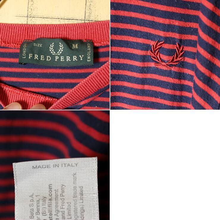 イタリア製 FRED PERRY フレッドペリー ボーダー Tシャツ ワンポイント 半袖 レッド ネイビー メンズM 古着 051320ss15