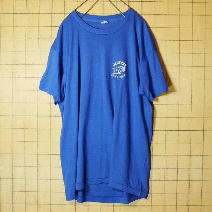 70s 80s USA製 SCREEN STARS プリント 半袖 Tシャツ ブルー メンズL相当 バッファロー JACKSON BUFFALOES 古着です。
