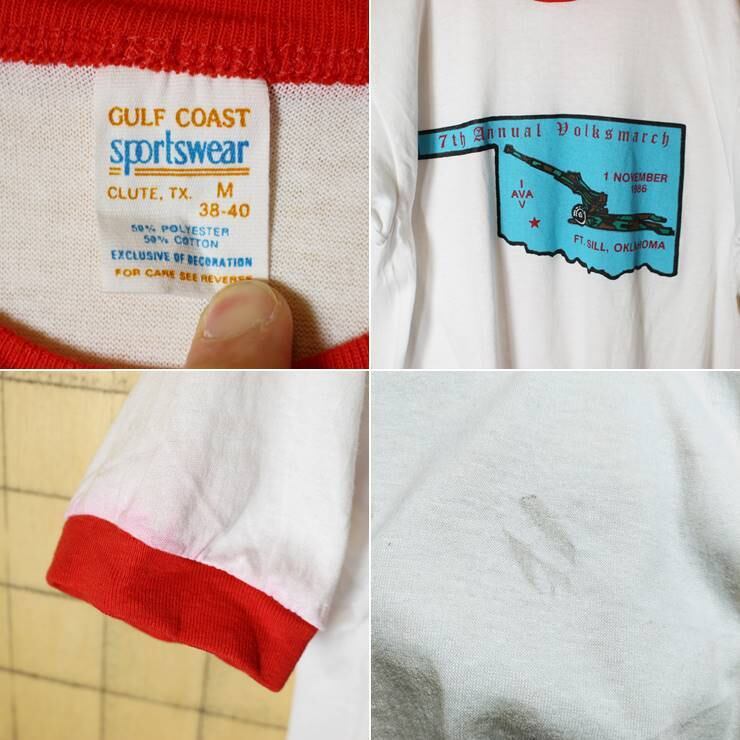 80s USA製 sportswear プリント 半袖 リンガー Tシャツ ホワイト 白 レッド メンズM 7th Annual Dolksmarch 古着 051320ss64