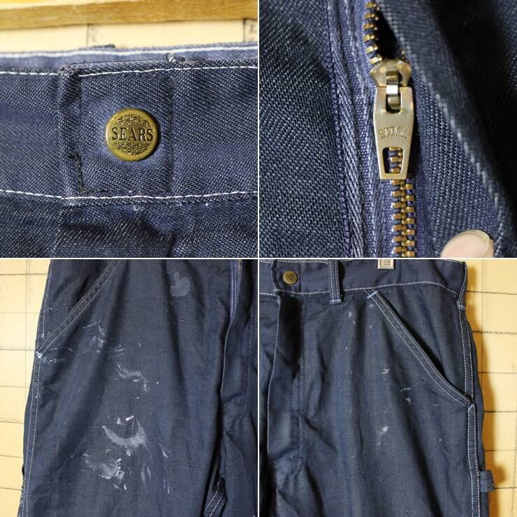 70s 80s USA製 Sears シアーズ デニム ペインターパンツ W35相当 ネイビー ワークウェア アメリカ古着です。