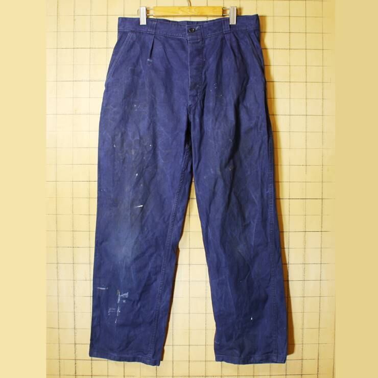 60s 70s フランス ドイツ コットン ペインター ワークタックパンツ W33相当 ネイビー ブルー ヨーロッパ古着 EURO 051320ss14です。