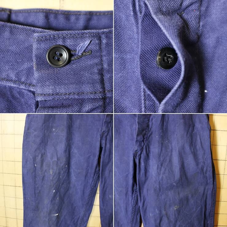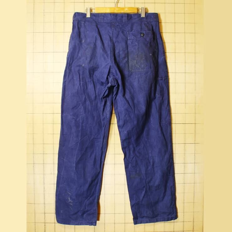 60s 70s フランス ドイツ コットン ペインター ワークタックパンツ W33相当 ネイビー ブルー ヨーロッパ古着 EURO 051320ss14