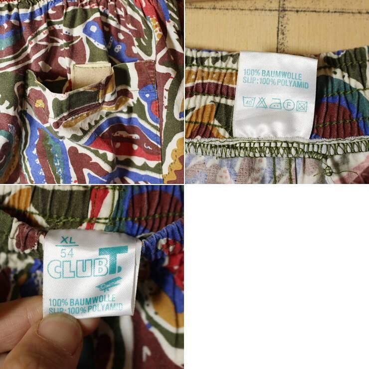 80s EURO 総柄 ショーツ ハーフパンツ メンズXL カラフル グリーン ブルー レッド ショートパンツ 短パン 古着 070220ss51
