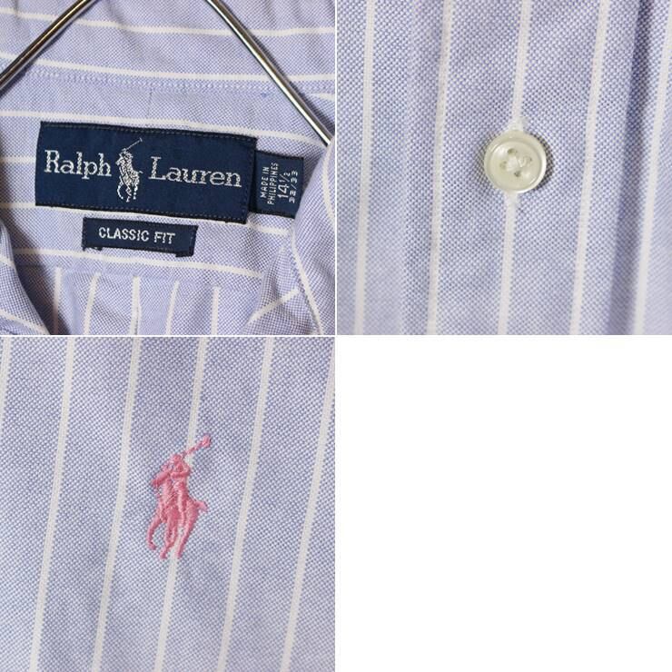USA Polo Ralph Lauren ボタンダウン 長袖 ストライプ シャツ ライトブルー メンズM相当 ラルフローレン 古着です。