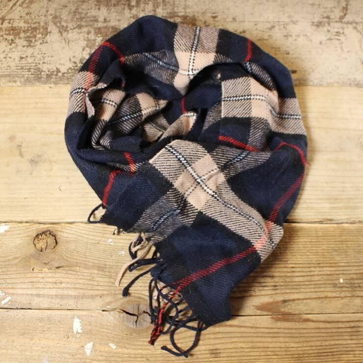 EURO タータンチェック マフラー ネイビー ブラック ストール 古着 081820aw93