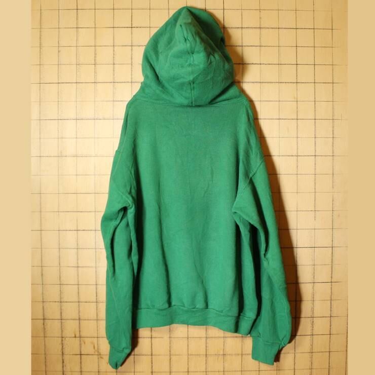 70s USA製 RUSSELL ATHLETIC 金タグ 無地 スウェットパーカー グリーン メンズM ラッセルアスレチック フーディー 古着 100720aw29