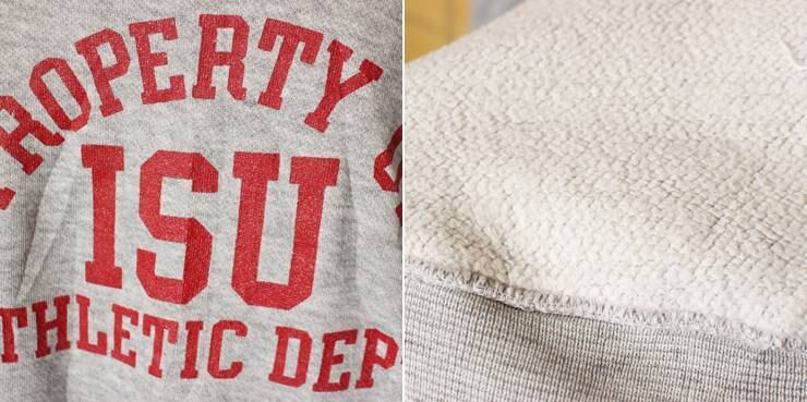 PROPERTY OF ISU ATHLETIC DEPTとバランスの良い3段プリント。