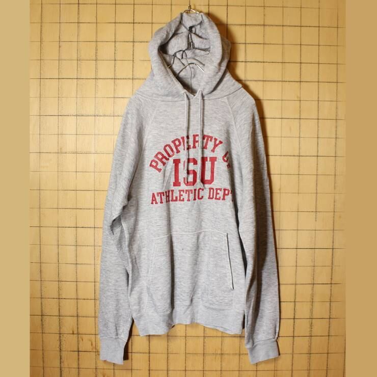USA製 70s 3段プリント スウェットパーカー 霜降り グレー メンズSM相当 フーディー 古着 100720aw43