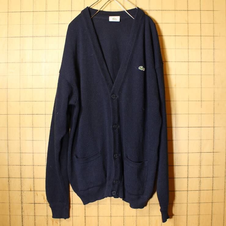 フレンチ ラコステ LACOSTE ウール ニット カーディガン ネイビー メンズL相当 ポケット 100720aw76