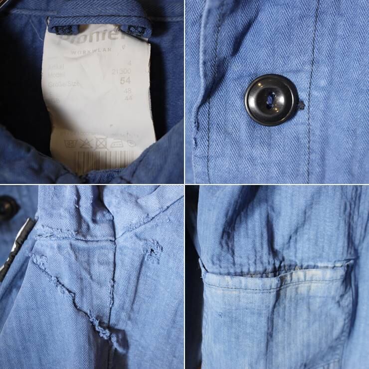 60s 70s ドイツ Pionier ヘリンボーン ワーク ジャケット カバーオール メンズML相当 ネイビー ビンテージ ヨーロッパ古着 100720aw5