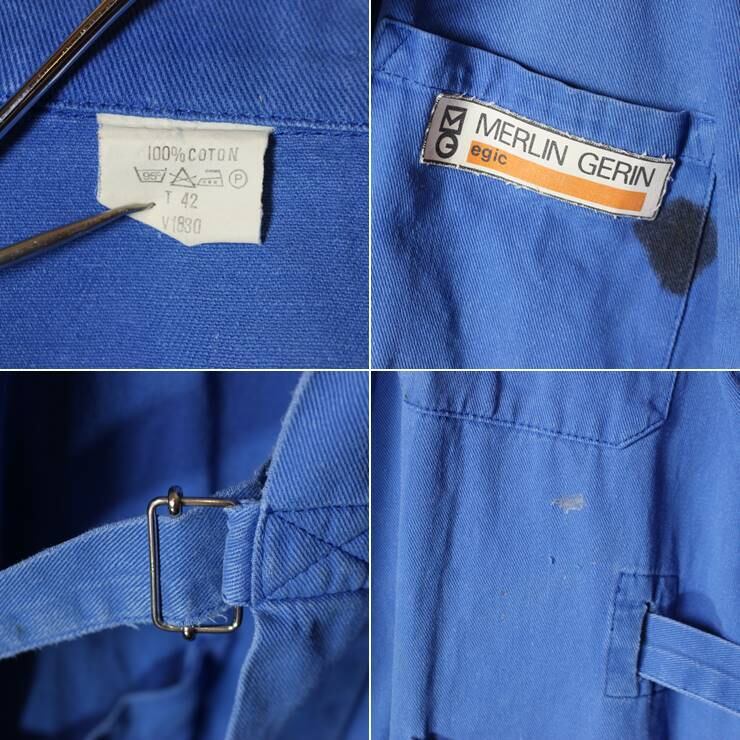 60s 70s EURO フランス ドイツ ワーク コート ブルー メンズM相当 ベルト付き ビンテージ ヨーロッパ古着 100720aw12