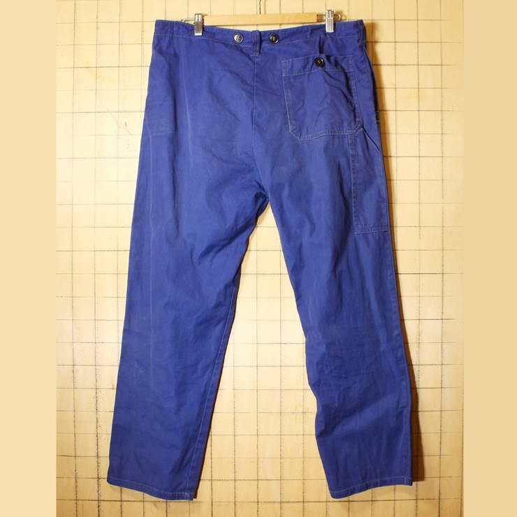 60s 70s フランス ドイツ コットン ペインター ワークパンツ W36相当 ネイビー ブルー ヨーロッパ古着 EURO 100720aw14