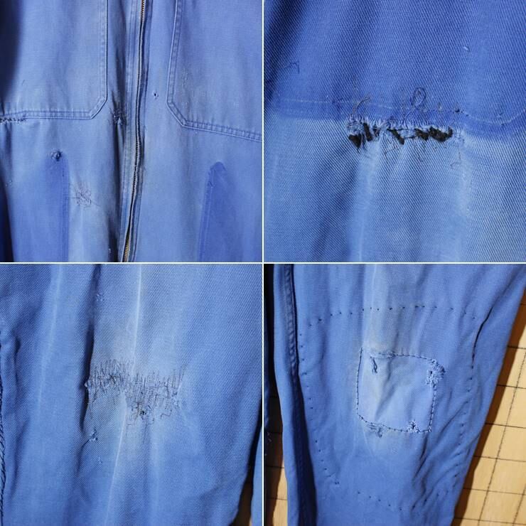 60s 70s フランス オールインワン つなぎ ペインター ワークパンツ W44相当 ロイヤルブルー ダメージ EURO ヨーロッパ古着 100720aw18