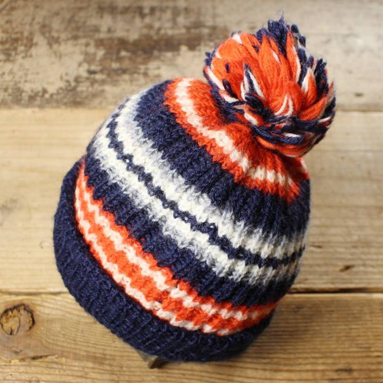Euro 編み込み ポンポン ウール ニット キャップ ネイビー オレンジ ヨーロッパ古着 100720aw122です。