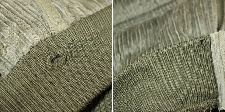 裾のリブに数箇所1cmほどのホールダメージがあります。