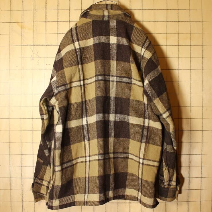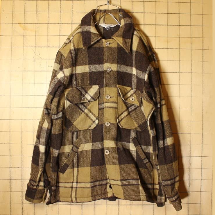 70s 80s USA製 Woolrich ウールリッチ チェック ウール ジャケット メンズM相当 ブラウン アウトドア 古着 010621aw31