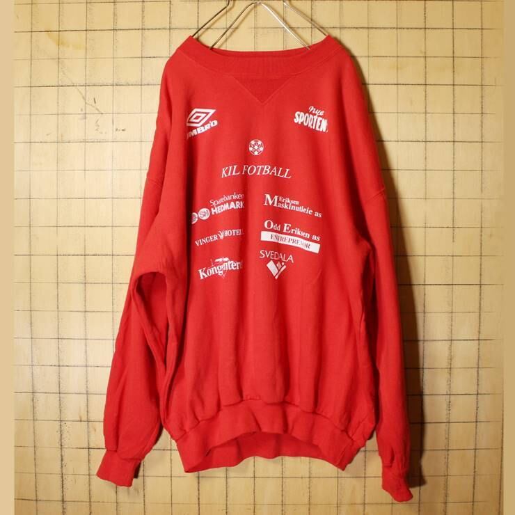 90s UMBRO アンブロ ロゴプリント スウェット レッド メンズM トレーナー アメリカ古着 010621aw36