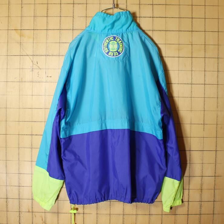 90s NIKE ナイキ ハーフジップ ナイロンジャケット プルオーバー ライトブルー パープル レディースL アウトドア キャンプ アメリカ古着 nj-19