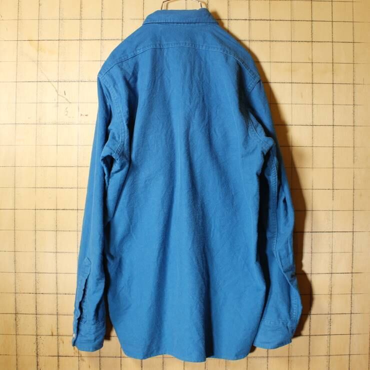 80s Woolrich ウールリッチ アウトドア シャモアクロスシャツ メンズM ブルー コットン 長袖 キャンプ アメリカ古着 010621aw18