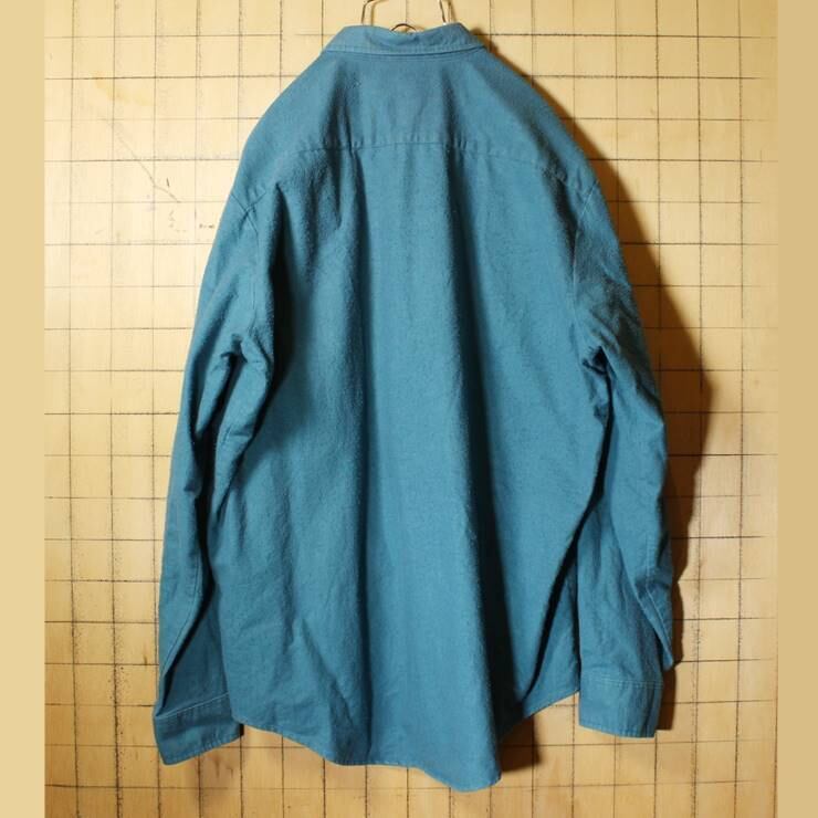ビッグサイズ 80s USA製 Longleaf アウトドア シャモアクロスシャツ メンズXL グリーン コットン 長袖 キャンプ アメリカ古着 010621aw19
