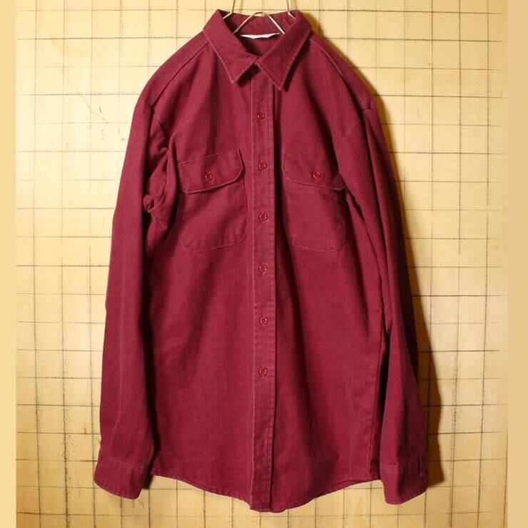 USA製 FIVE BROTHER アウトドア シャモアクロス シャツ メンズL キャンプ ボルドー レッド コットン 長袖 5 アメリカ古着です。