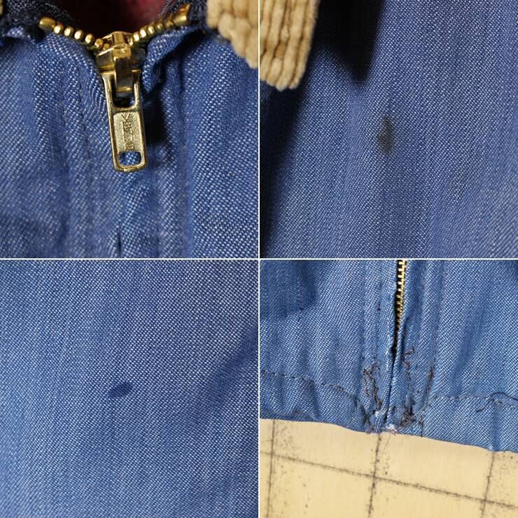 60s 70s USA製 ジップアップ デニム ワークジャケット ブランケットライナー アウトドア メンズXL相当 ブルー コーデュロイ 古着 021021aw66