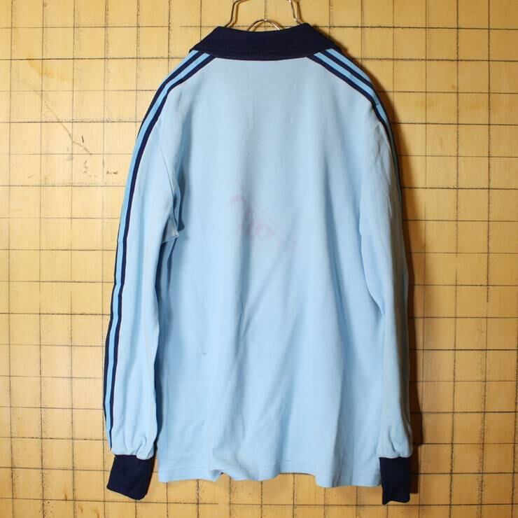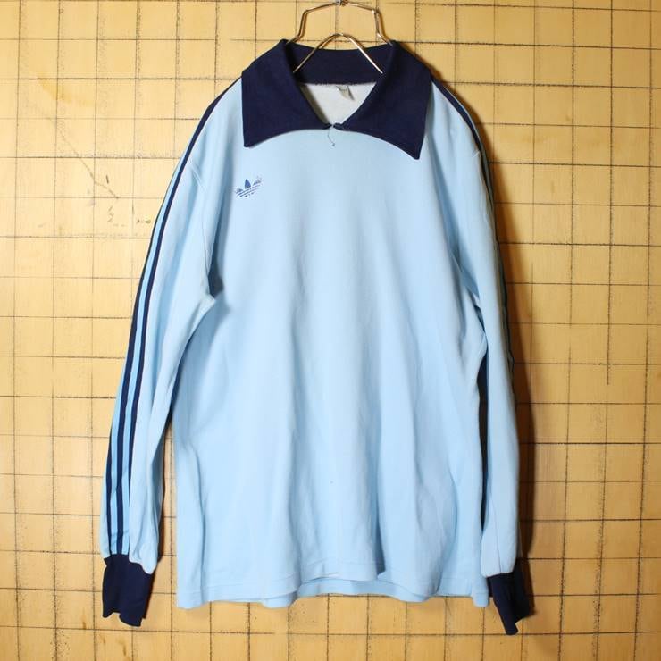 70s フランス製 adidas アディダス VENTEX サッカーシャツ ライトブルー メンズSM相当 ワンポイント ロンT ジャージ ヨーロッパ古着 021021aw30