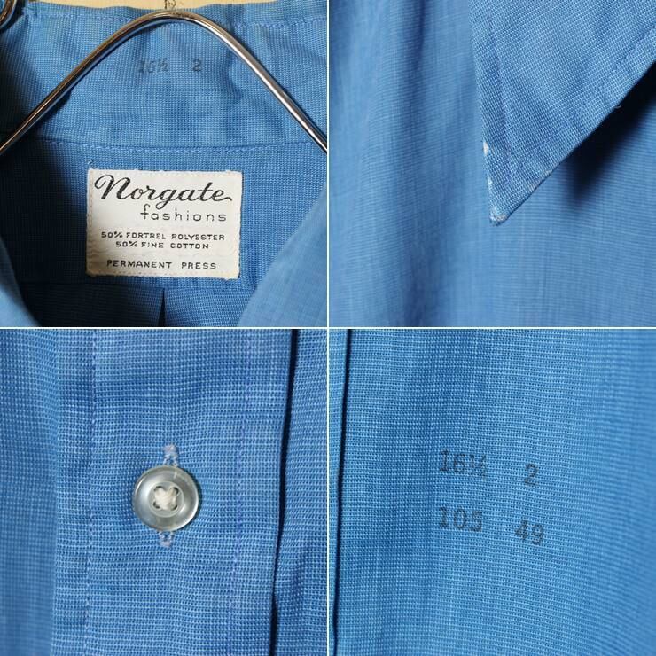 60s 70s Norgate ライトフランネル シャツ メンズXL相当 ブルー 青 長袖 アメリカ古着です。