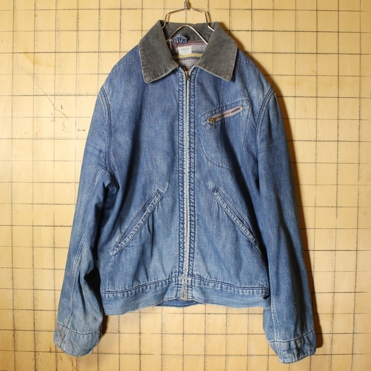 60s USA製 SEARS ROEBUCK HERCULES ヘラクレス デニム ジップアップ ジャケット メンズS相当 ブランケットライナー ブルー 濃紺 古着 030721ss4