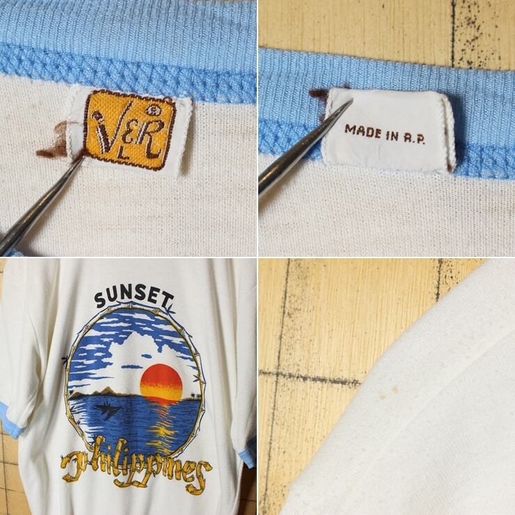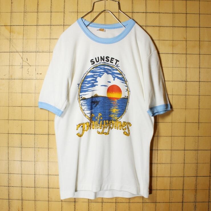 70s 80s SUNSET philippines プリント 半袖 Tシャツ ホワイト メンズS相当 レディースSM相当 古着 081820aw128