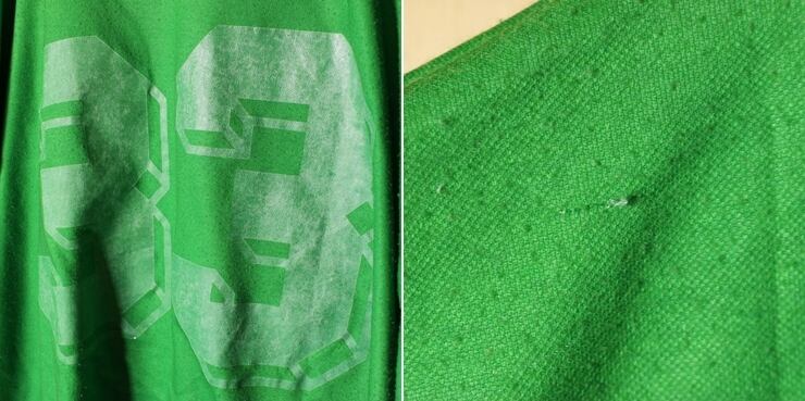 腹部に薄くシミ、左肩に軽微なほつれがあります。