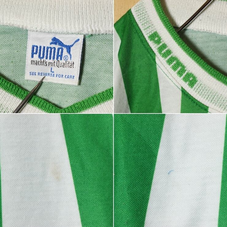 EURO PUMA プーマ 半袖 サッカー Tシャツ グリーン 緑 メンズL ヨーロッパ古着です。