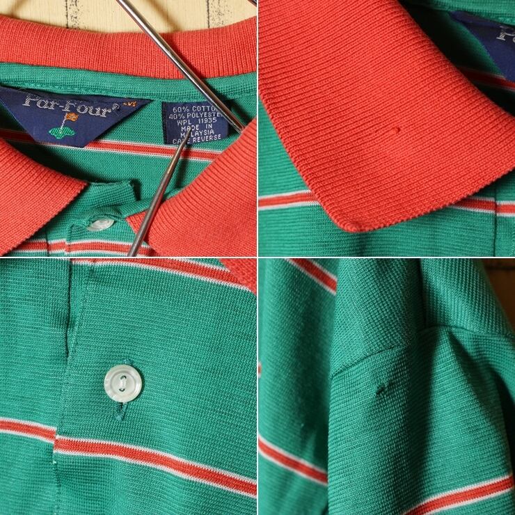 USA Par-Four 半袖 ボーダー ポロシャツ グリーン レッド メンズM ポケット アメリカ古着です。