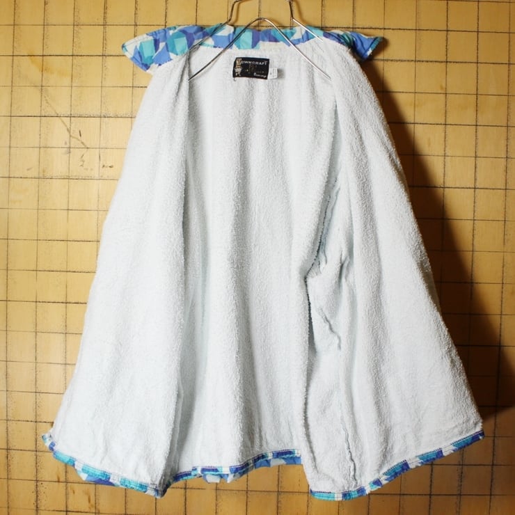60s 70s Penneys オープンカラー パイル ビーチ シャツ メンズXL ライトブルー 青 アロハ ハワイアン 総柄 ボックス 半袖 開襟 古着 081820aw164