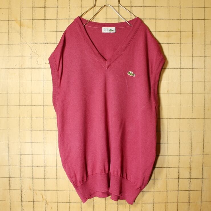 80s フランス製 フレンチ ラコステ LACOSTE ウール ニット ベスト Vネック レッドパープル メンズL相当 ヨーロッパ古着 040721ss28