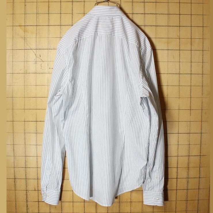 フレンチラコステ Lacoste 長袖 ストライプ シャツ ブルー ホワイト メンズM相当 ヨーロッパ古着 040721ss21