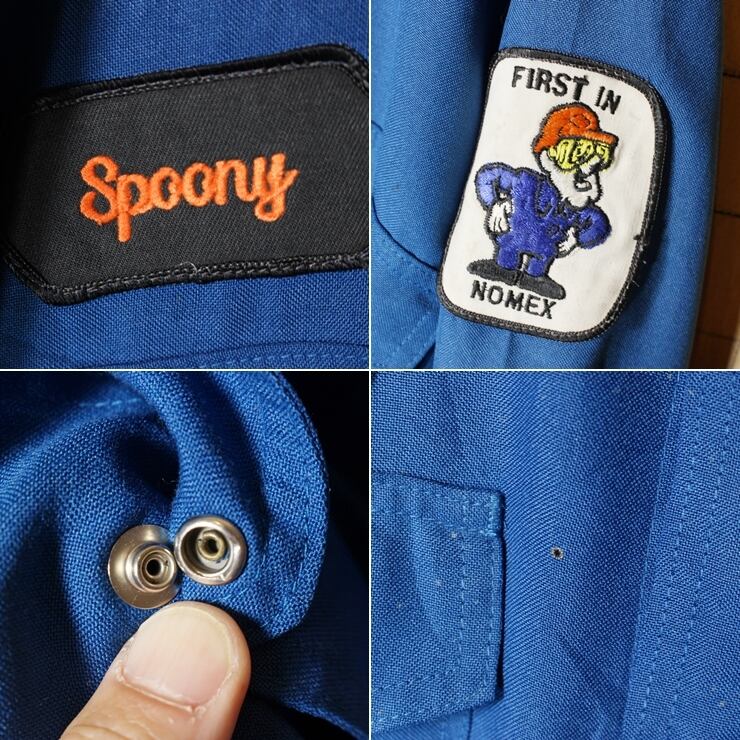70s 80s USA製 ワッペン ワーク シャツ ブルー メンズXL相当 長袖 FIRST IN NOMEX アメリカ古着です。