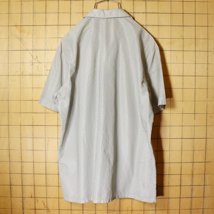 60s 70s EURO チェック シャークカラー ボックス ナイロン シャツ グレー メンズML相当 半袖 オープンカラー 開襟 ヨーロッパ古着 040721ss46