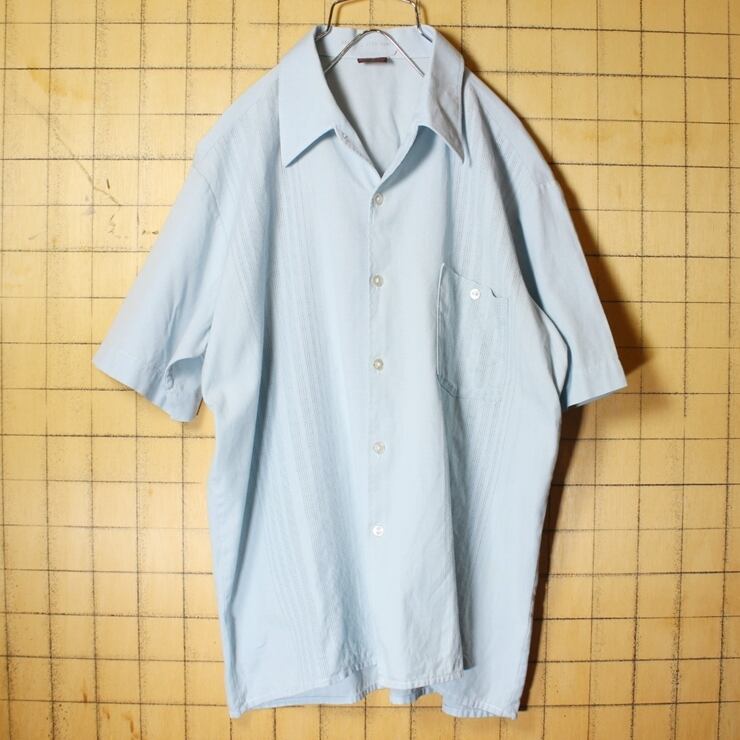 60s 70s EURO LINOMON ボックス シャークカラー シャツ ライトブルー メンズML相当 半袖 オープンカラー 開襟 古着です。