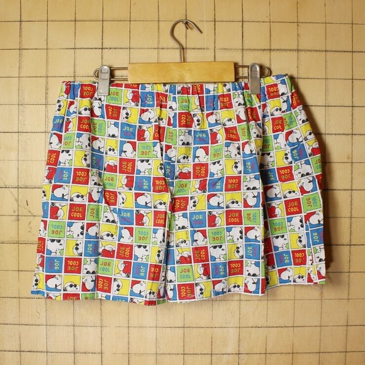 ハンドメイド SNOOPY スヌーピー プリント ショートパンツ カラフル ショーツ メンズML相当 ホワイト 白 短パン アメリカ古着 040721ss175
