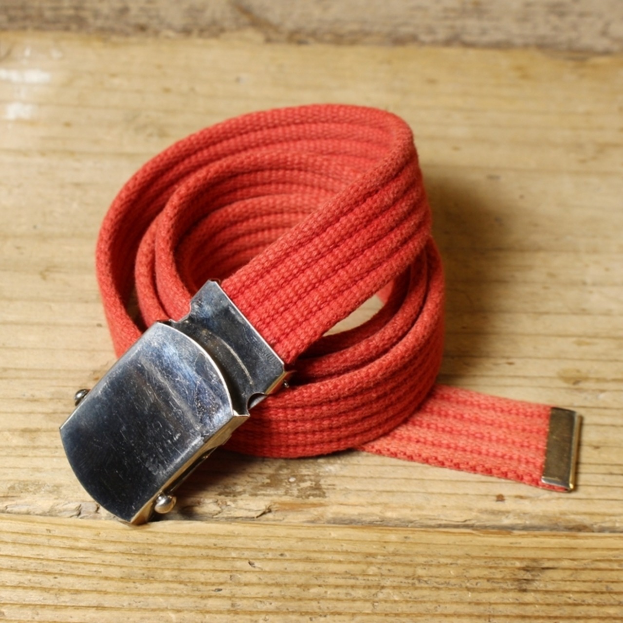 USA バックル コットン ウェブベルト ガチャ レッド 赤 アメリカ古着 040721ss216