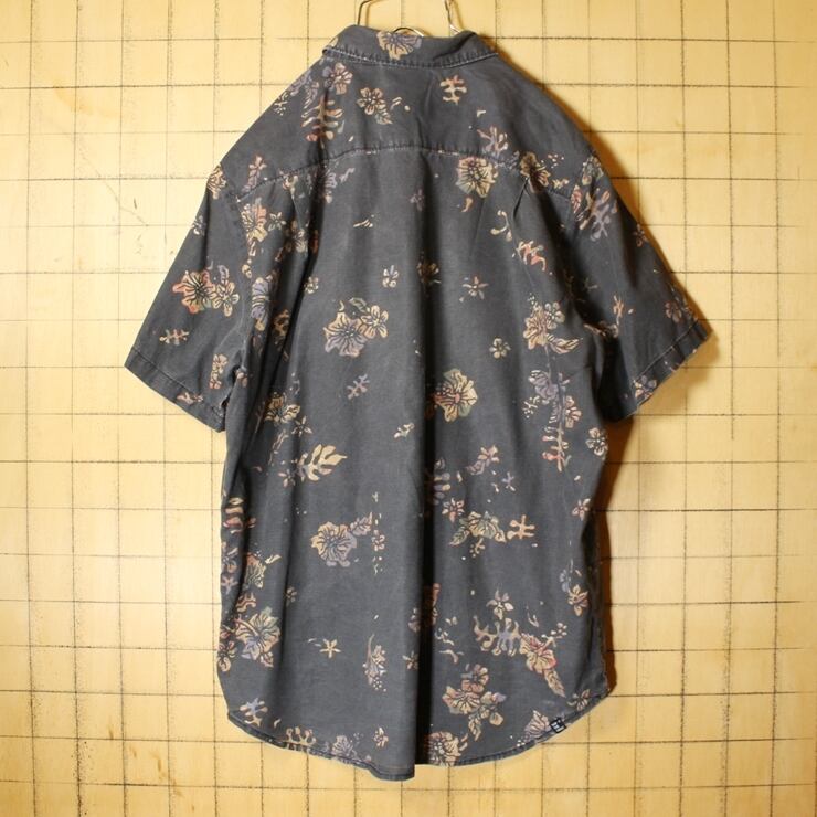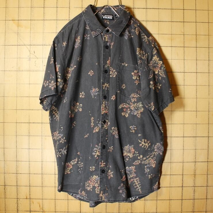 VANS バンズ 花柄 ハワイアン コットン シャツ メンズS ブラック 黒 アロハ 半袖 アメリカ古着 062321ss107