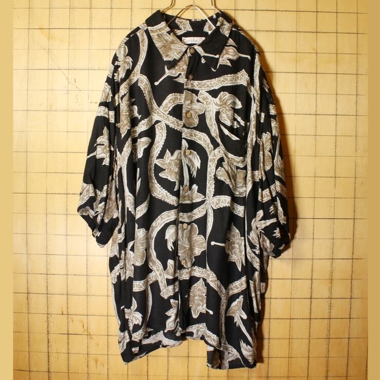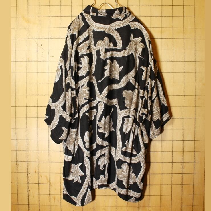 ビッグサイズ Caribbean 草花柄 ハワイアン レーヨン シャツ メンズXL ブラック 黒 アロハ 半袖 アメリカ古着 062321ss109