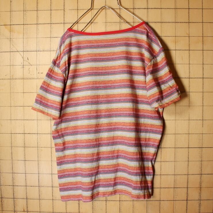 80s 90s EURO ボーダー Tシャツ レッド ブルー イエロー メンズSM相当 カラフル ヨーロッパ古着 062321ss25