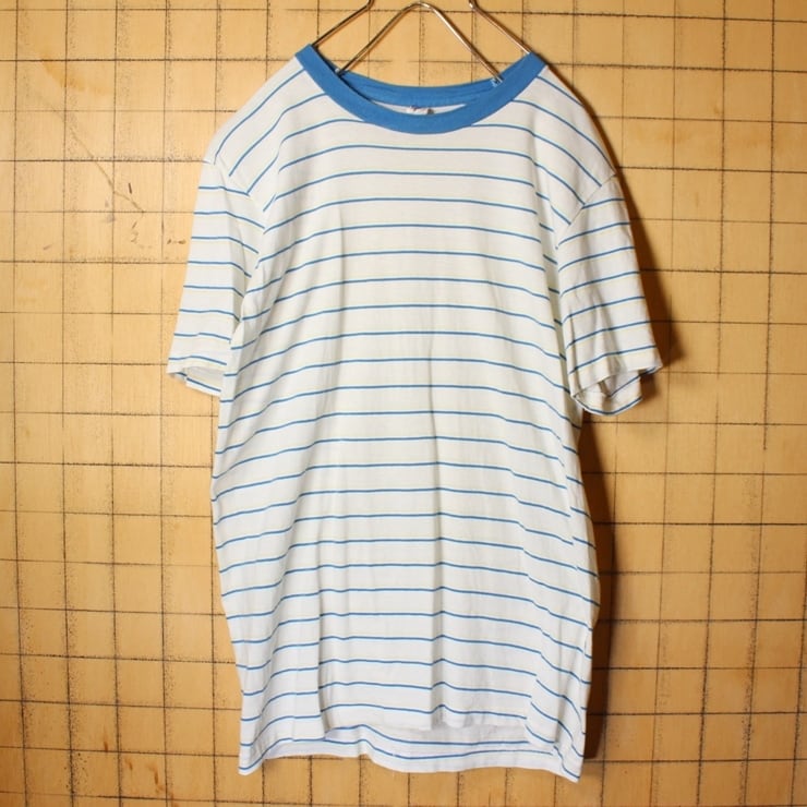 80s 90s EURO イタリア製 ボーダー Tシャツ ライトブルー イエロー ホワイト メンズM相当 ヨーロッパ古着 062321ss31